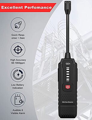 Mini Gas Leak Detector, 50 to 1000PPM, Sound Alarm