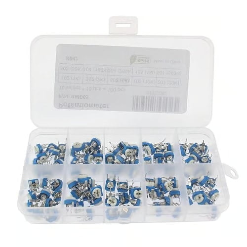 Potentiometer Kit, Variable Resistor, 50pcs, 500 ohm 1K 2K 5K 10K 20K 50K 100K 200K 1M