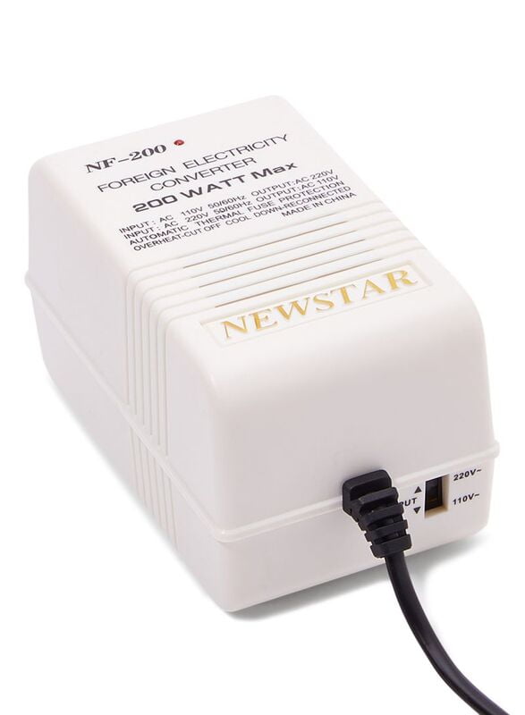 A high-quality voltage converter, 230V AC/115V AC, 200W NewStar, perfect for various electronic applications, including converting, regulating, and more. This converter features a reliable performance and a durable design, making it ideal for converting and regulating.
